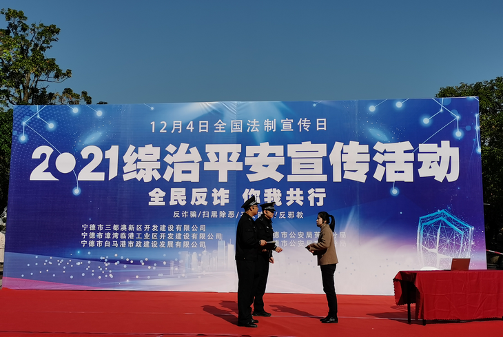 为深化“平安国企”建设,增强国企社会责任,宣传社会治安综合治理相关方针政策,努力营造人民群众积极参与平安建设的良好社会氛围。12月4日上午,在国家“宪法日”之际,肉视频 、市临港公司、市白马港公司联合宁德市公安局蕉城分局、东侨分局在南岸公园开展2021综治平安宣传活动。
