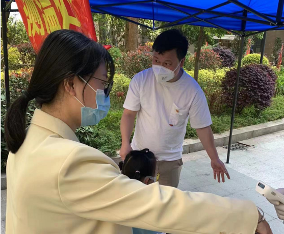 党员黄兰同志下沉金溪社区、湖滨社区,化身“大白”,在核酸采样点认真做好体温检测、引导群众提前准备好采集码等工作,同时在湖滨社区中心协助做好社区人员信息登记工作,高质量完成筛查任务。