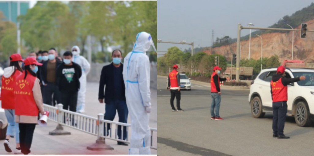 (市临港公司志愿者在维持核酸检测现场秩序)