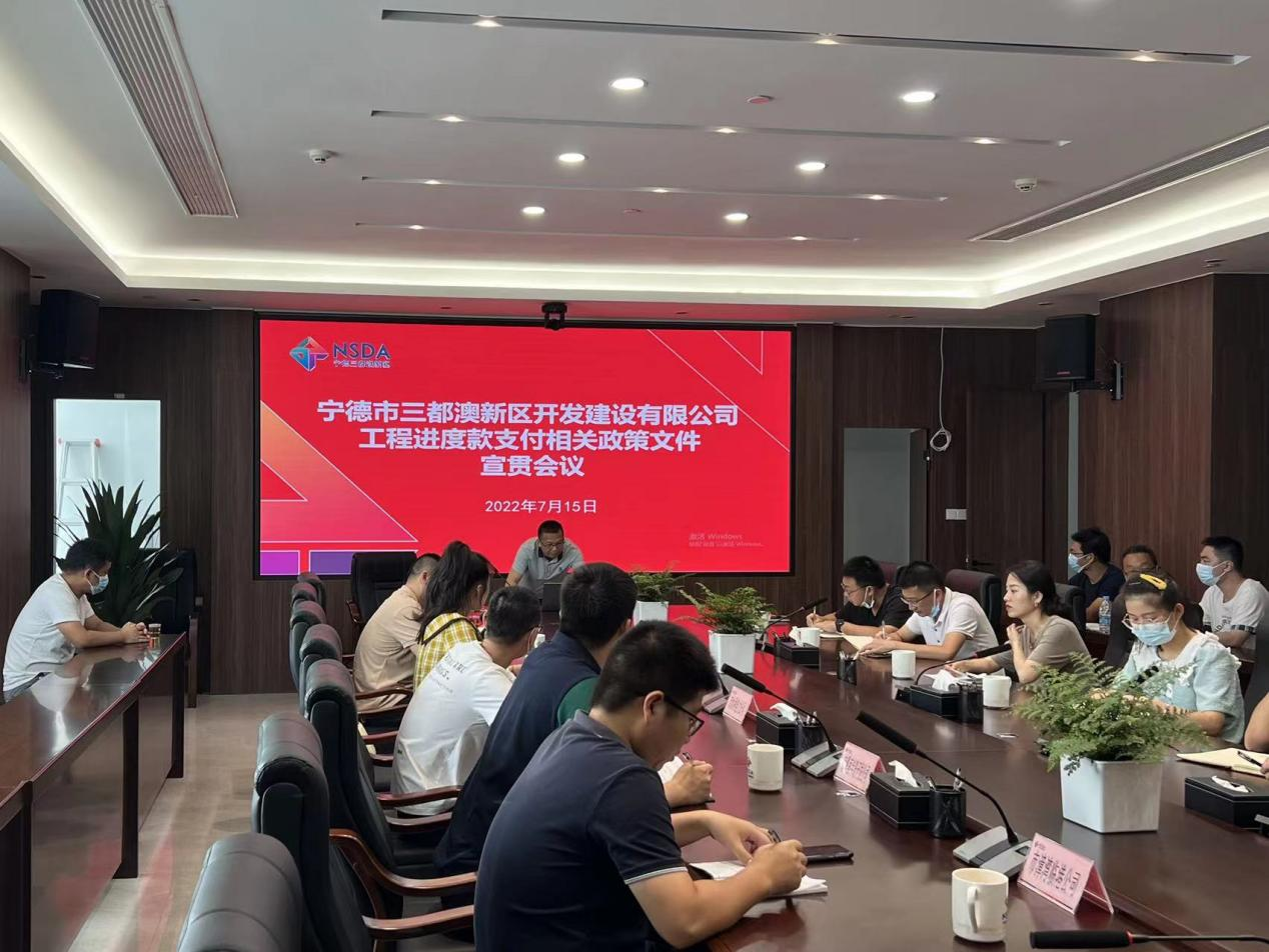 7月15日下午,公司工程部组织召开了工程进度款支付的相关政策文件宣贯会议。公司及各子公司分管领导、工程部及财务部负责人以及各在建项目负责人参加了宣贯会议,会议由公司总工程师陈开斌主持。